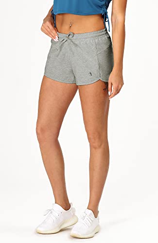 icyzone Damen Sport Shorts Kurze Sporthose Laufhose Jogginghose Atmungsaktive Laufshorts (L, Grau)