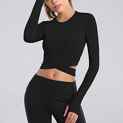 OEAK Sportshirt Damen Langarm/Kurzarm Top Nahtlos Sport Yoga Oberteile Laufshirt Sporttop Frauen Crop Top Fitness Training Gym Shirt,Langarm-Schwarz,S