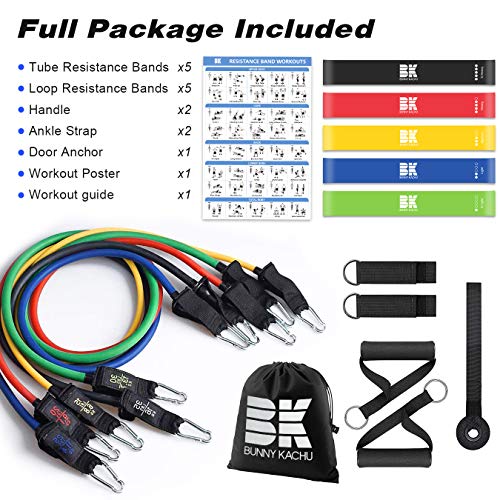 【Tragbare Trainingsausrüstung】: Das Workout-Bandset enthält Resistance Band × 5, Loop Bands × 5, Knöchelriemen × 2, Griffe × 2, Türanker × 1, Tragetaschen × 2, Workout Guide × 1, Workout Poster × 1. Ganz Zubehörteile sind gut abgepackt in der Tragetasche. Beste tragbare Trainingsgeräte für zu Hause, im Büro, im Fitnessstudio oder im Hotel. Behalten Sie Ihre Trainingsroutine jederzeit und überall bei!