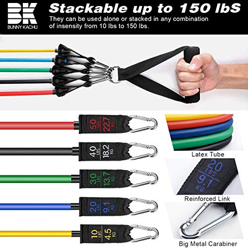 【5 Varing Resistance Level Bnads】: Jedes Band ist farbcodiert mit einer Länge von 48 “und Widerstandsstufen von 10-50 lbs-Gelb (10 lbs), Trunken (20 lbs), Grün (30 lbs), Schwarz (40 lbs), Rot (50 lbs) , Dies kann allein oder gestapelt in einer beliebigen Kombination von 10 bis 150 Pfund verwendet werden. Aus Defensive, den Sie benötigen, kann einfach für verschiedene Übungen eingestellt werden.