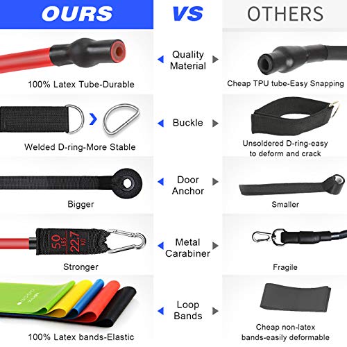 【Sichere und langlebige Materail】: Fitnessbänder besteht ganz hochwertigem Latex mit hoher Haltbarkeit und Elastizität, um ein Knacken der Bänder zu verhindern. Verbesserte, stärkere Karabiner, Schnallen und gewebtes Gurtband umsorgen Sicherheit solange des Gebrauchs. Mit Schaumstoff umwickelte Griffe sind weich und rutschfest und umsorgen ein hervorragendes Griffgefühl.