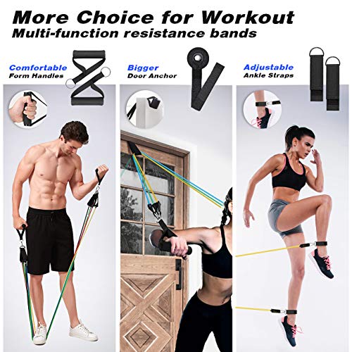 Resistance Bands Set,Fitnessbänder Set(18 PCS) Fitnessband Stapelbar bis zu 150lbs,Expander Tubes Rubber Bands mit Griff Fußschlaufen Türanker Fitness Geräte für Zuhause Männer und Frauen
