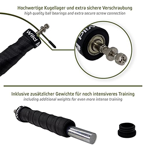 Wild Instincts® Profi Springseil, Anti-Rutsch Griffe, 3m Stahlseile/Sprungseil mit Kugellager/Extragewichte mit Tasche/Speed Rope/Jump Rope für Seilspringen/Springseil Erwachsene Fitness
